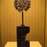 Another, rather unlikely, co-organizer of the exhibition was the Czech military, and the Military History Institute Prague. It is startling to see in the display cases next to a three-winged arrowhead from the 1st to 2nd century CE, a modern item such as a soldier’s Kevlar helmet from 2007-2008 (see image 2) — representing the ISAF mission. Yet upon reflection one realizes that this is sadly appropriate: Afghanistan’s history is defined by wars (Alexander the Great, the Moguls, and the “Great Game” to mention a few). As Mr. Novák pointed out, the first historical reference to the territory of present-day Afghanistan is linked to Persian military campaigns and stems from Darius the Great. As he further explained to me, there is a saying that “all art stops in times of war”, but this does not hold true when it comes to Afghanistan.