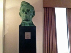 - A very large bust of President Lincoln stands silently, keeping vigil from the back of the second-floor balcony.