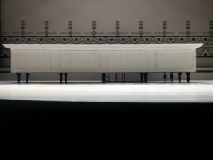 A technique I really enjoyed was how the play switched between the historic time (around 1830s) and the present day/near future. This plot element was accelerated towards the end of the play. The pace of switching-between-times happened faster, became more abrupt, a very clever development as by this point the audience had become accustomed to this time-travel element. Interesting too was that most actors would take on roles in both epochs (the past and the present) which added to the feeling of these two time frames gradually merging. In its sped-up frequency one message became even more clear: In linking the past to the present, the historic weight and the importance of the issues addressed were brought to life in a powerful way. At one point Sarah Polson from the now was in the same room with Major Ridge from the past. In her red dress she froze during that scene until it was her turn again. The past and the present shared a stage, which intensified the feeling of how they connect with each other. And to the future.